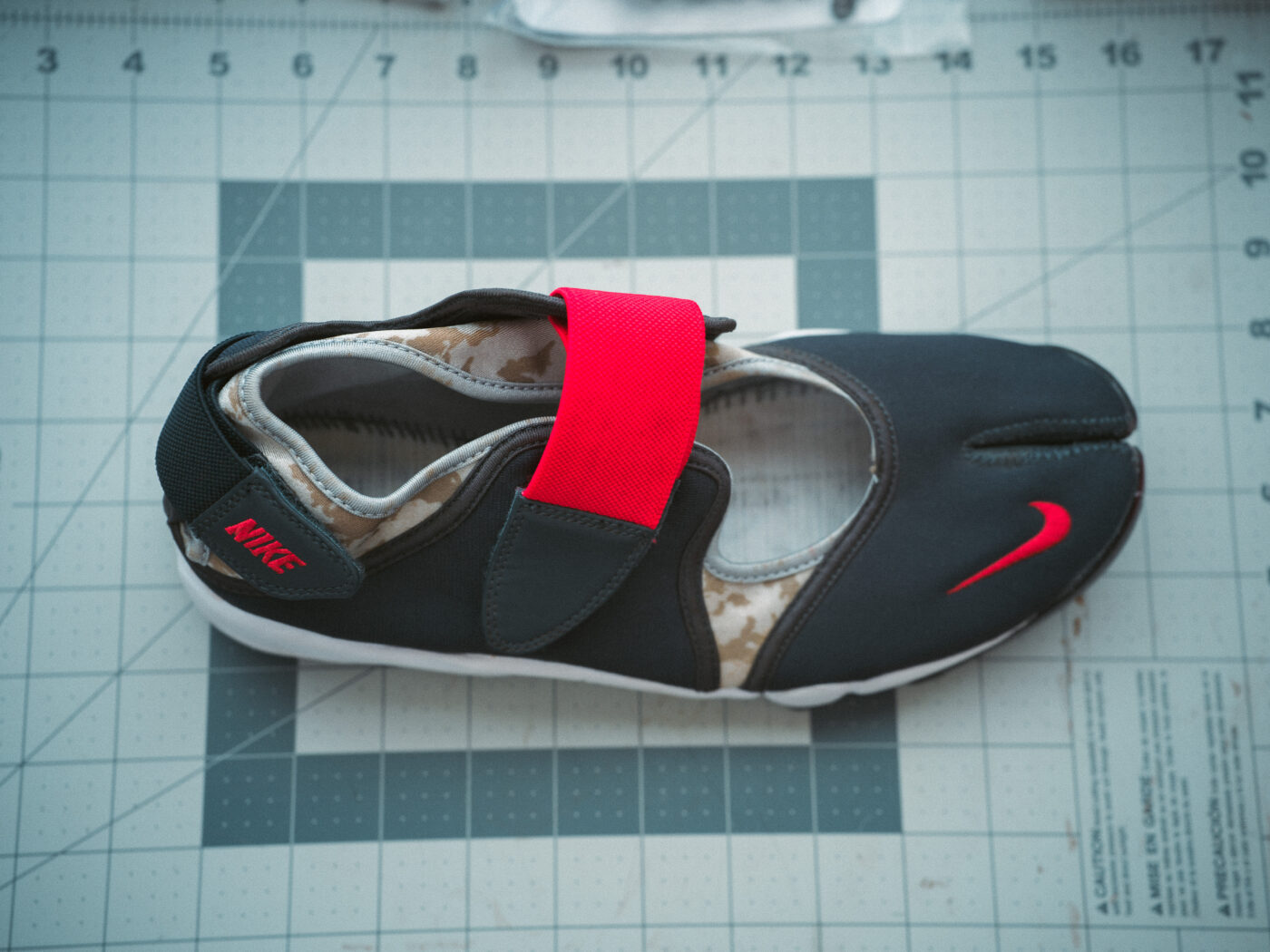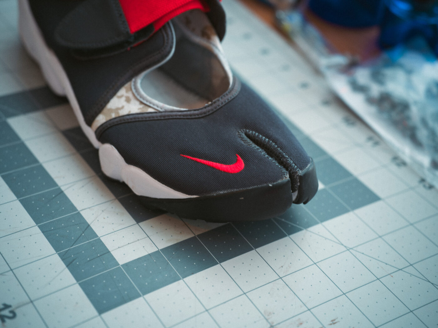ベースとなっているスニーカーはNike Air Riftというモデルで、足袋のようなデザインで最近また人気になってきています。